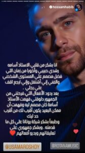 وفي سياق متصل، وجه حسام حبيب رسالة شكر خاصة إلى أسامة رشدي، المدير التنفيذي لشركة روتانا بالقاهرة، عبر حسابه على إنستجرام، معبرا عن امتنانه للدعم الشخصي والفني الذي تلقاه منه خلال فترة عودته.