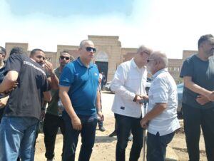تامر عبدالمنعم وشقيقه وخالد سرحان وعماد زيادة يستقبلون العزاء بمدافن الأسرة