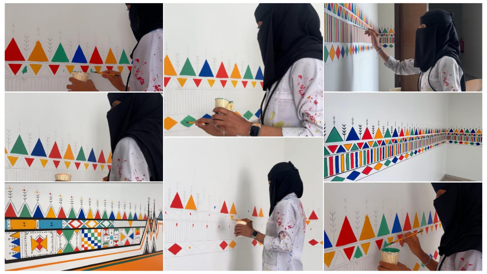 وجاءت اللوحة الفنية لتمنح المكان حيوية بصرية بألوانها الزاهية وثرائها الثقافي، ما نال إعجاب مديرة الأكاديمية وكافة الموظفات والزائرات، وأضفى على الأجواء طابعًا تراثيًا أنيقًا ومعاصرًا في آن واحد.