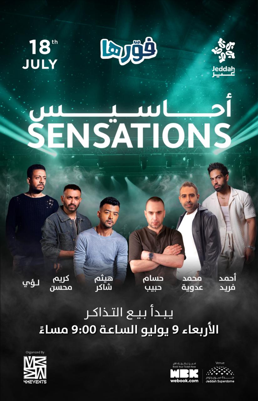 أعلنت شركة فور إم إيفنت عن إقامة واحدة من أقوى حفلات هذا الصيف تحت عنوان “أحاسيس”, وذلك مساء الخميس الموافق 18 يوليو بمدينة جدة، حيث يجتمع على مسرح واحد نخبة من نجوم الغناء العربي الذين اشتهروا بإحساسهم العالي وأغانيهم الخالدة.