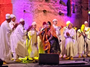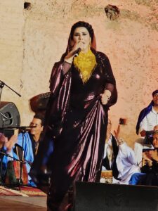 سعيدة شرف؛ التي تشرفت بكونها أول امرأة تعتلي هذه المنصة العريقة في مناسبة مماثلة، وتشارك في هذه التظاهرة للمرة الأولى، سطعت بين نجوم المهرجان كنجم فريد، فاض صوتها بانسجام نادر مع الإيقاعات المختلفة، ولامس الحناجر والقلوب في آن.
