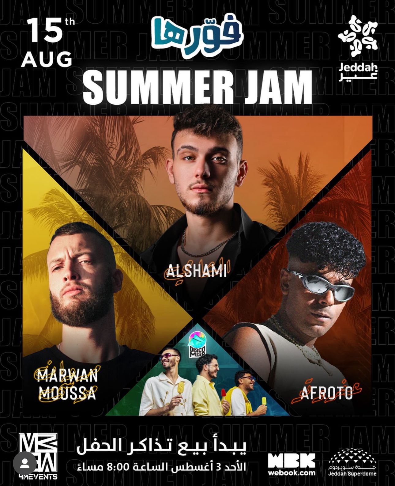 الشامي ومروان موسى وعفروتو وديسكو مصر في ليلة “فورها Summer Jam” بسوبر دوم جدة