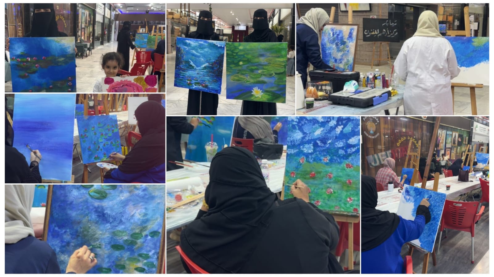 وتُعد هذه الورشة الأولى من نوعها في محاكاة إحدى لوحات مونيه الشهيرة، حيث شهدت مشاركة أكثر من 20 فنانة، إلى جانب مشاركة مميزة من ذوي الاحتياجات الخاصة وذوي الهمم، لتؤكد رسالة الفنانة ميساء في نشر تاريخ الفن العالمي لكافة الأعمار والفئات المجتمعية.