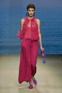 يمكنك اختيار إطلالة كاملة باللون الفوشيا مع التنويع في درجاته أو أنواع الأقمشة لكسر رتابة المظهر.