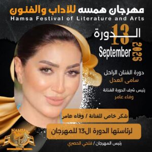 وكتبت وفاء عامر: “كنت قد تشرفت باختيار الاخ والصديق الصحفي فتحى الحصري لي رئيسا شرفيا للدورة الثالثة عشرة لمهرجان همسة والتى تحمل اسم فنان عزيز على قلوبنا جميعا الراحل سامى العدل وقد كان هذا الاختيار منذ عدة شهور، وقد وافقت نظرا لعلاقتى الطيبة والتى تمتد لسنوات طوال برئيس المهرجان الصديق والأخ فتحي الحصري هذا أولا ولمكانة المهرجان الذي يقام تحت مظلة وزارة الثقافة ويحظى بمكانة وسمعة طيبة”.