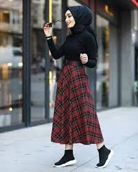 مع بلوزة سوداء برقبة عالية: ارتدي الجيب الكاروهات مع بلوزة سوداء برقبة عالية وحذاء بكعب عالٍ.