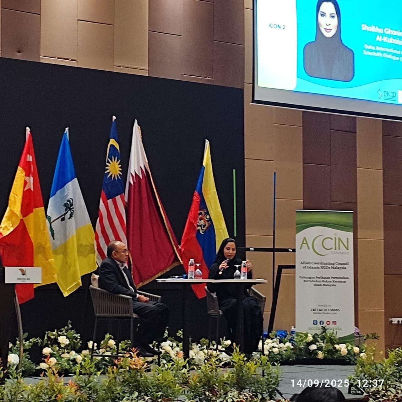 شاركت شيخة الكبيسي، ممثلة المركز العربي الأوروبي لحقوق الإنسان والقانون الدولي في قطر، في المؤتمر الدولي للسلام والحوار بين الأديان، الذي نظّمه مركز الدوحة الدولي لحوار الأديان، حيث قدمت ورقة علمية بعنوان «القيم الداخلية وبناء السلام: بداية للسلام العالمي» ضمن محور حوار الشباب.