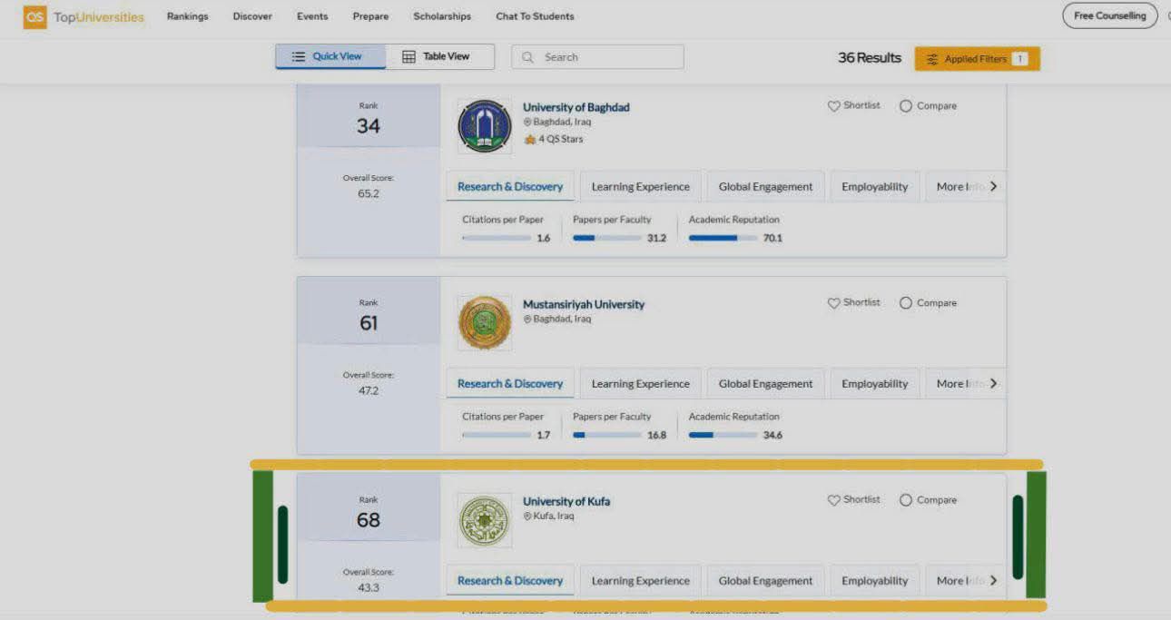وأكد الأستاذ الدكتور علاء ناجي المولى رئيس الجامعة، أن هذا التصنيف يعكس حجم التحول الذي تشهده جامعة الكوفة على مستوى جودة الأداء الأكاديمي والتأثير العلمي، مشيرًا إلى أن الجامعة وضعت نصب أعينها الوصول إلى مصاف الجامعات الرائدة إقليميًا وعالميًا.