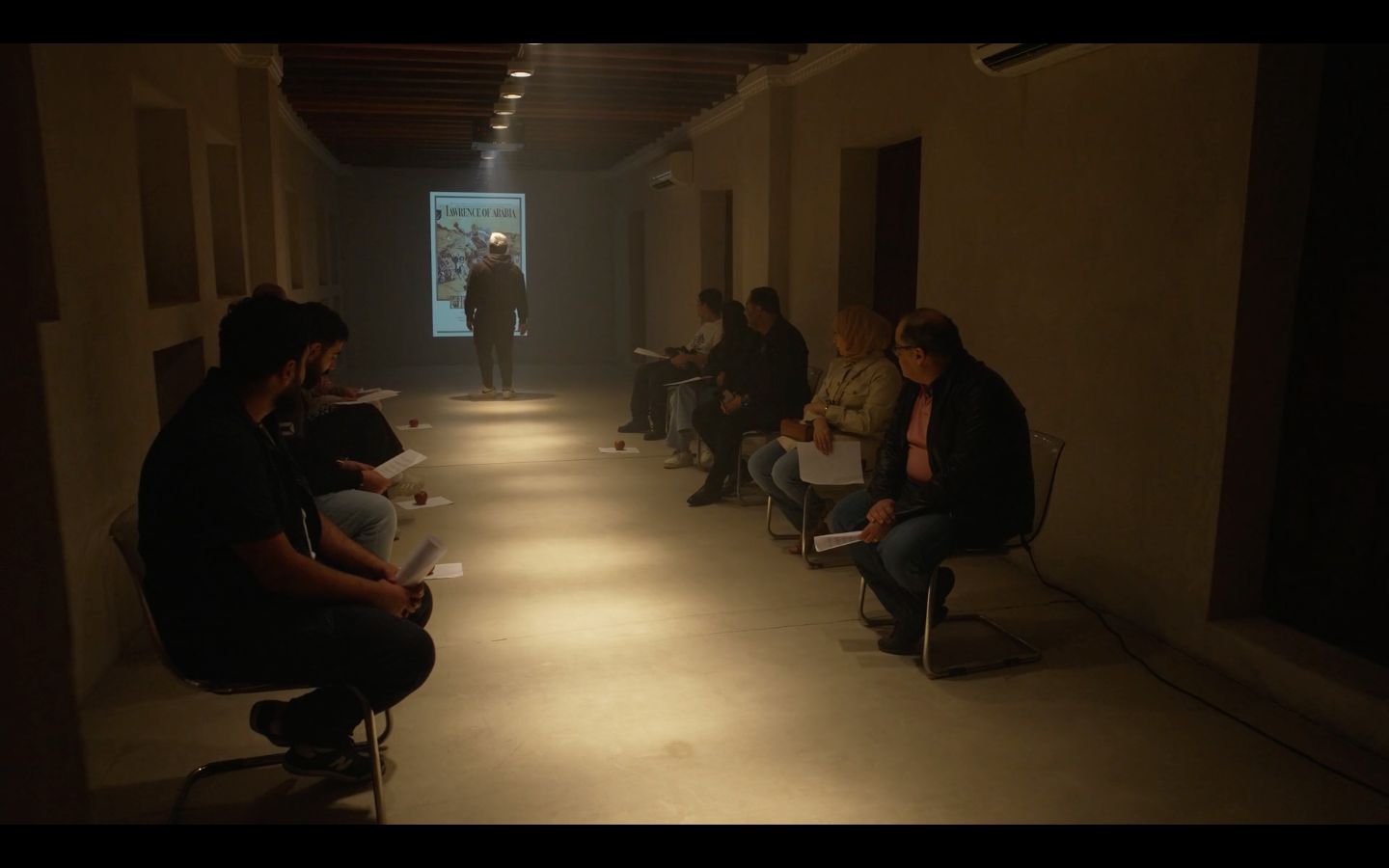 وبالاستعانة بالذكاء الاصطناعي، يستحضر العرض قصصًا مستلهمة من وثائق تاريخية ودراسات، من بينها كتاب “أعمدة الحكمة السبعة” (1922) ومراسلات “الحسين – مكماهون”، في حوار بين الذاكرة التاريخية والرواية الشفهية المتوارثة في غزة.