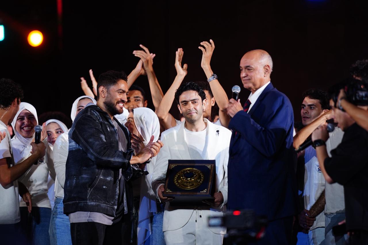 إدارة الجامعة قدّمت درع التكريم للنجم الكبير تقديرًا لمشاركته وإشعاله للأجواء بحفله المميز.