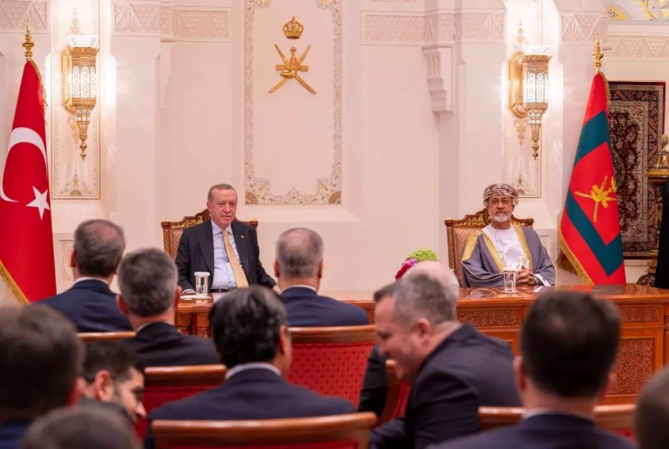 شهد السُّلطان هيثم بن طارق سلطان عمان، والرئيس رجب طيب أردوغان، رئيس جمهورية تركيا، في قصر العلم العامر ، مراسمَ التوقيع على إعلان وبيان مشتركين، إلى جانب ست اتفاقيات وثماني مذكرات تفاهم، في إطار زيارة “دولة” يقوم بها فخامته إلى سلطنة عُمان.