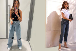 يمكنكِ ارتداء بلوزة أنيقة أو قصيرة مع جينز عالي الخصر.