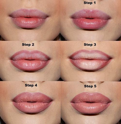 ضعي طبقة أولى: طبقي أحمر الشفاه إما مباشرة من العبوة أو باستخدام فرشاة شفاه للحصول على لون غني.
