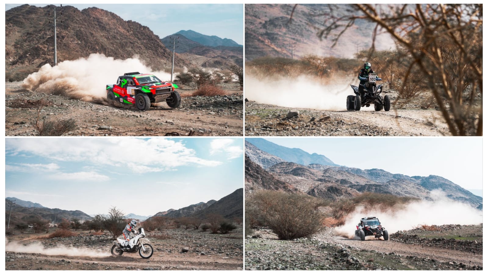 أما فئة الدراجات رباعية العجلات (كوادز)، فقد تصدر هاني النومسي الترتيب بزمن بلغ ساعتين و52 دقيقة و3 ثواني، فيما جاء عبدالرحمن العبداللطيف في المركز الثاني بزمن 3 ساعات و53 دقيقة و31 ثانية، وجاءت مريهان الباز في المركز الثالث بزمن 5 ساعات ودقيقة واحدة و11 ثانية.