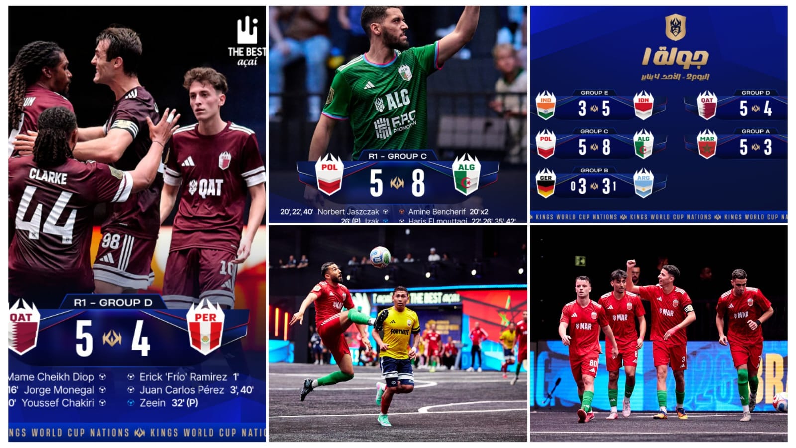 أما المنتخب القطري، فحقق فوزاً مثيراً على منتخب بيرو بنتيجة (5–4) ضمن المجموعة الرابعة، بفضل تألق يوسف شاكيري الذي أحرز ثلاثة أهداف، إلى جانب بصمة زكريا زروال الذي صنع تمريرتين حاسمتين، في مباراة حبست الأنفاس حتى صافرتها الأخيرة.