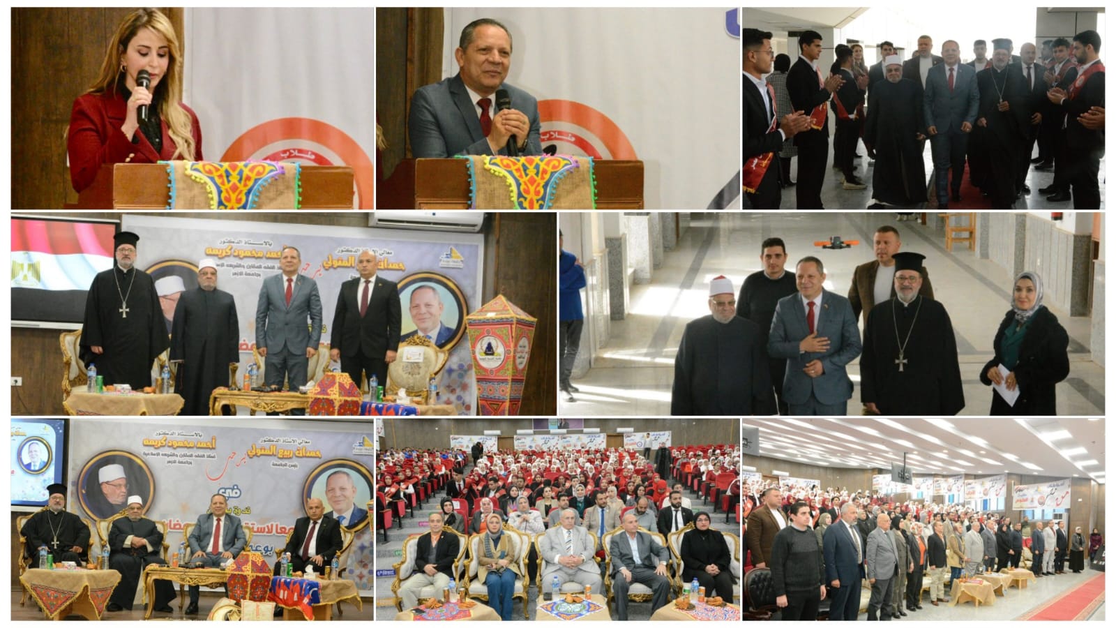 وفي كلمته، رحّب الأستاذ الدكتور حمدان ربيع المتولي بفضيلة الدكتور أحمد كريمة وبالسادة الحضور، مؤكداً أن استضافة أحد علماء الأزهر الشريف تعكس حرص الجامعة على دعم الفكر المستنير وترسيخ قيم التسامح والانتماء، وبمشاركة نيافة الأنبا هشام، مؤكدًا أن ذلك يعكس صورة مصر الحقيقية القائمة على التآخي والتسامح متمنياً أن تسود أخلاق شهر رمضان الكريم طوال العام.