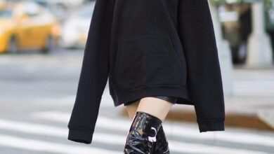 تتجسد ببلوزة كروب من التول الأصفر والمنسقة بعناية مع سروال واسع القصة من الكريب الأسود وحذاء من الجلد الأسود عالي الكعب، لقد مزجت ما بين حرارة الأصفر وبرودة الرمادي الباستيل ونسقت مع البلوزة والتنورة المستقيمة بطابع كولوربلوك، الجزمة الرمادية المطاطية لإضفاء طابع عصري على الزي.