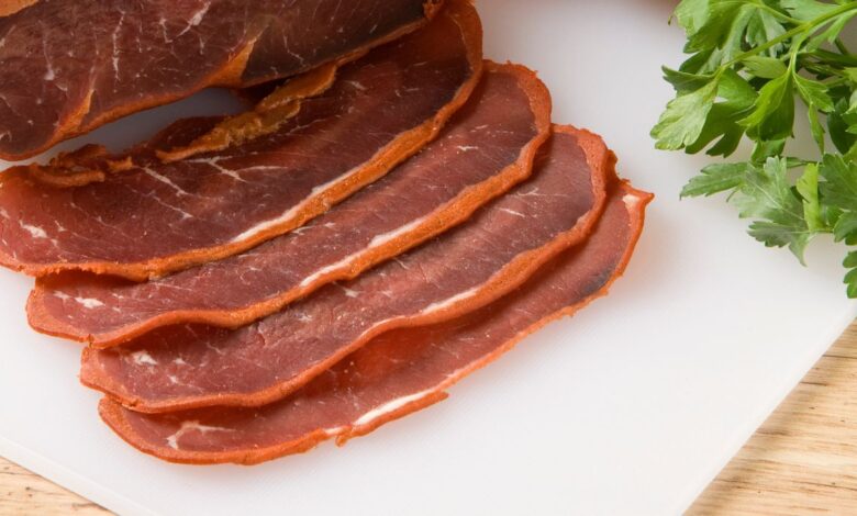 المقادير لتحضير البسطرمة 1 و1/2 لتر ماء. 1/2 كوب ملح. ملعقة كبيرة ملح معالج. 1/2 كوب سكر. 1/4 كوب سكر بني. ملعقة كبيرة عسل. ملعقة كبيرة بهار مخلل. 1/2 ملعقة كبيرة كزبرة. 1/2 ملعقة كبيرة من بذور الخردل الصفراء. 2 فص ثوم مفرومة. 1800 غرام لحم من صدر البقر. ملعقة كبيرة كزبرة مطحونة. ملعقة كبيرة فلفل أسود. ملعقة كبيرة بابريكا…