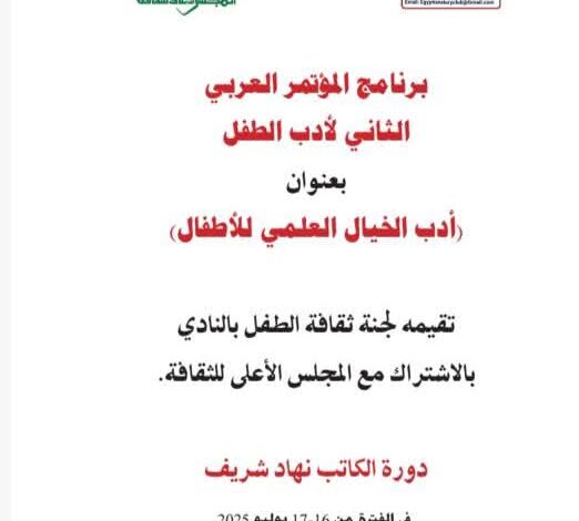 يستعد المجلس الأعلى للثقافة لإستضافة حدث ثقافي وعلمي بارز، وهو المؤتمر العلمي الثاني لأدب الأطفال، والذي يأتي هذا العام تحت عنوان “أدب الخيال العلمي للأطفال: جسر نحو المستقبل والإبداع”، ويُعقد المؤتمر برعاية نادي القصة بالقاهرة، وتحديدًا لجنة أدب الطفل، في الفترة من 16 إلى 17 يوليو 2025، بمقر المجلس الأعلى للثقافة بدار الأوبرا المصرية. يُعد هذا…